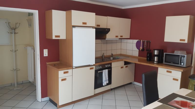 Erleben Sie den einladenden Charme von Wohnung 2 – einer 51 qm großen Unterkunft im Erdgeschoss für bis zu zwei Personen. Die voll ausgestattete Küche öffnet sich zu einer kleinen, gemütlichen Terrasse, wo Sie den Tag mit frischer Luft beginnen oder entspannt ausklingen lassen können. Das moderne Badezimmer mit Dusche und WC bietet höchsten Komfort. Ideal für Monteure und Zeitarbeiter.